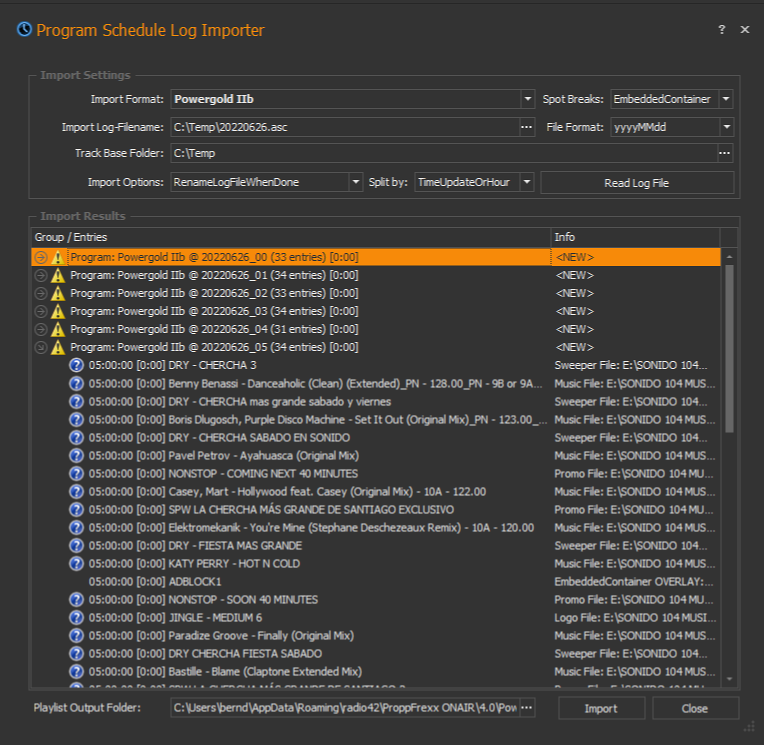 Maybe you can provide one newer test log file and I run the import and show you the result, and you can then compare it with yours…