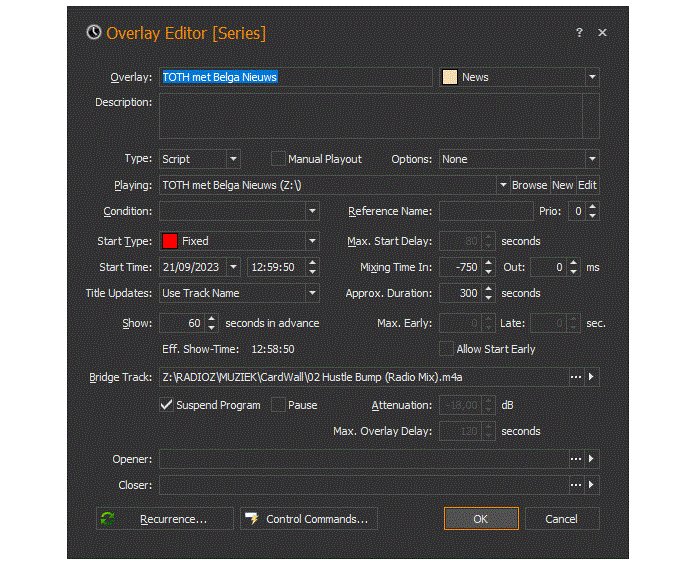 Can you the send your configuration how your program(s) are defined and how the overlay(s) are defined... maybe screenshots of each.