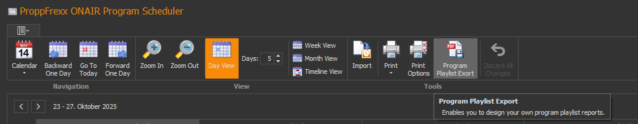 The report used during the automatic playlist generation is stored in a file called "Program Playlist Report.snx" stored within your ProppFrexx installation folder. If you want to modify it: