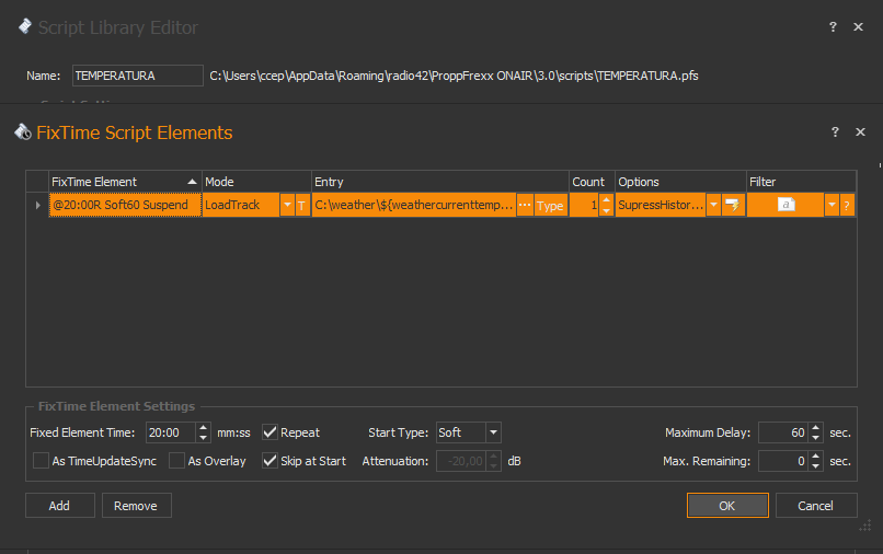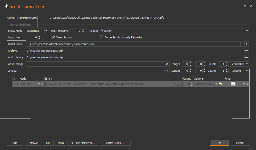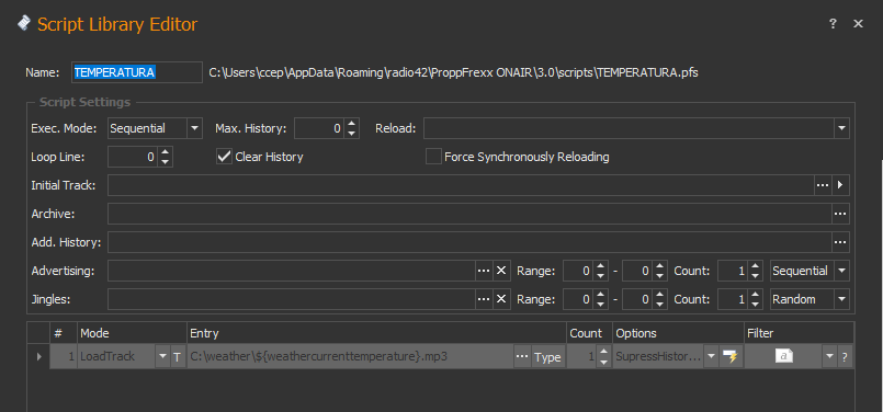 1º attempt LoadTrack, C:\weather\${weathercurrenttemperature}.mp3, Count=1, Options=SuppressAddHistory, SuppressHistoryCheck