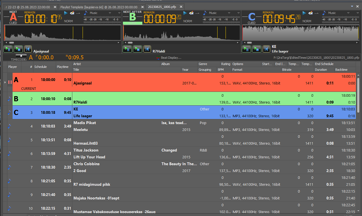 25.08.2023 06:58:38: Program:Playlist Template [kell7 e-r] (Playlist Template [kell7 e-r]), Start:25.08.2023 07:00:00, End:25.08.2023 08:00:00, Started:True