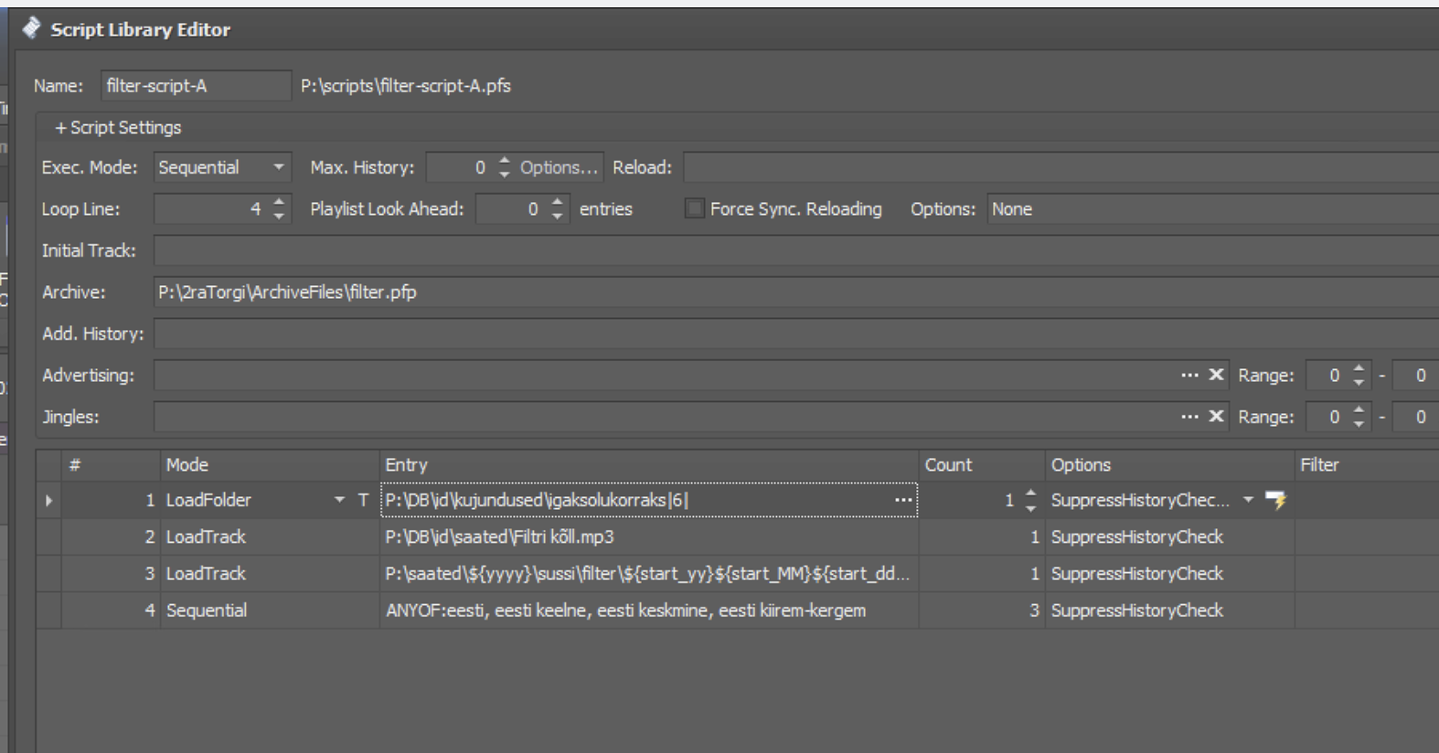 The intention for the Archive playlist function is, that when you repeat a script at a different, later time, that the same tracks being played at that time are not used again. This can be achieved, when you also specify that same Archive playlist also as the Additional History.