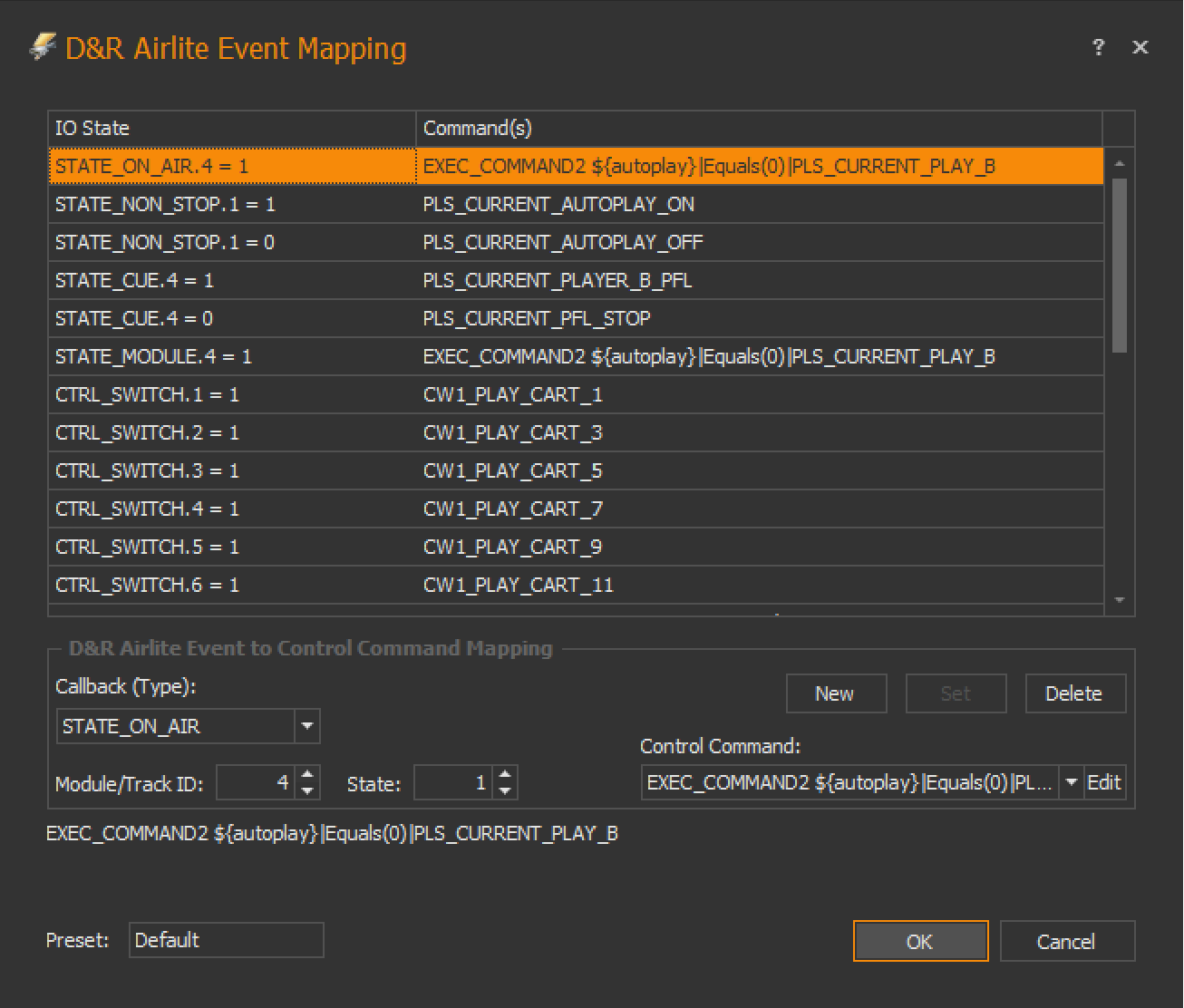 In the bottom part of the dialog you specify the external mixer event being send by the mixer AND you specify the ProppFrexx control-command(s) to execute. Click on the 'Edit' button to invoke the control-command builder dialog.