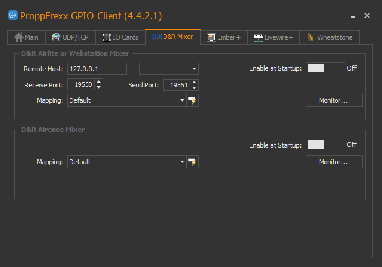 In the “ProppFrexx GPIOClient.exe” application you now configure the mapping of the external mixer event to a ProppFrexx control-command for any remoting activity, e.g. FaderStart etc.