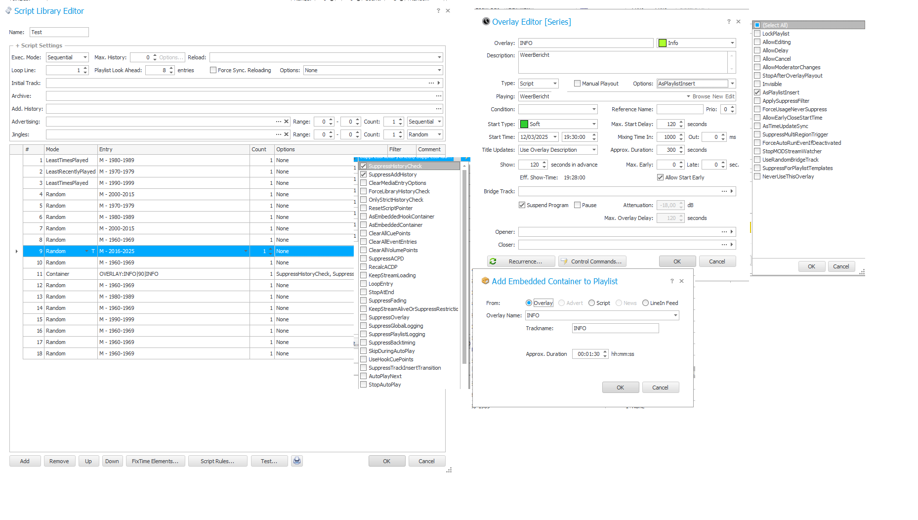 15/03/2025 7:54:00: WARNING: Overlay 'INFO-WeerBericht@2025-03-15T07:55:00' was suppressed (Playlist 'Test @ 15/03/2025 7:00:00' contains Embedded Overlay Container).