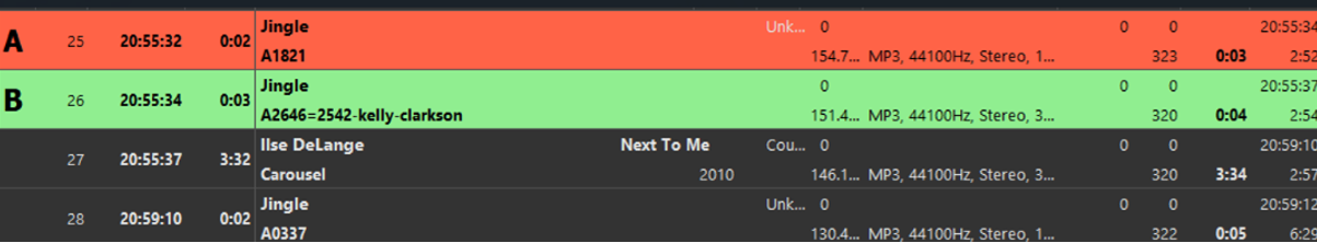 The above works in about 60 percent of the cases, but sometimes the song is not placed after the corresponding jingle, i.e. the song is skipped. This can, for example, lead to the following situations in the playlist: