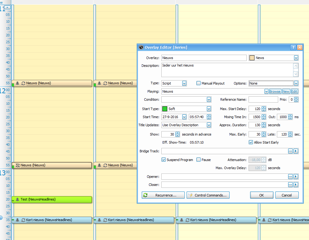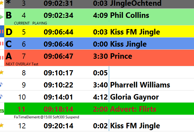 I am talking about the text at entry number 7 in red (in the previous screendump). There is a line there that says "Next Overlay Test" It warns for the next overlay and then at the correct time it used to start the overlay. This text disappeared without doing anything.