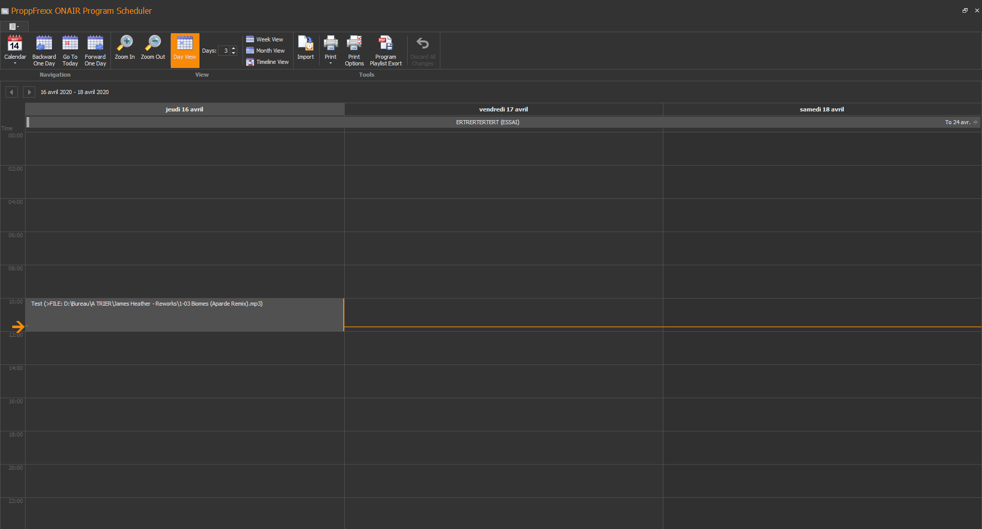 2- Adding a program schedule in parallel : soft type - playing one audio file - As overlay, one cycle