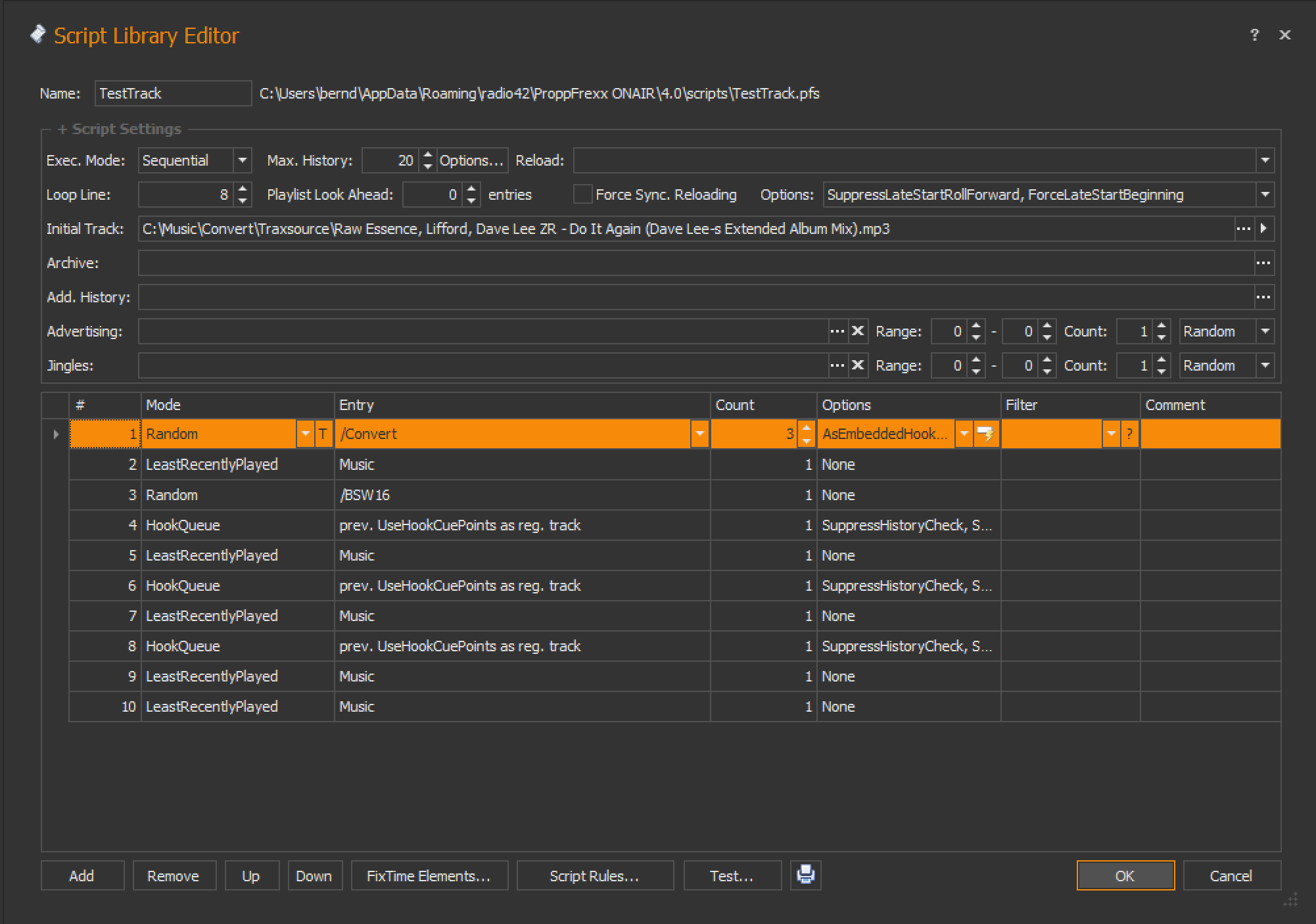 This will result in hook tracks, which are internally added to a new hook queue (organized as first-in-first-out list), as shown in the subsequent image: Following you can now use the new script-line mode 'HookQueue'. This mode now returns a track from the above mentioned hook queue, but as a regular media entry without the hook option. I.e. this returns a track, which was previously teased as a hook entry.