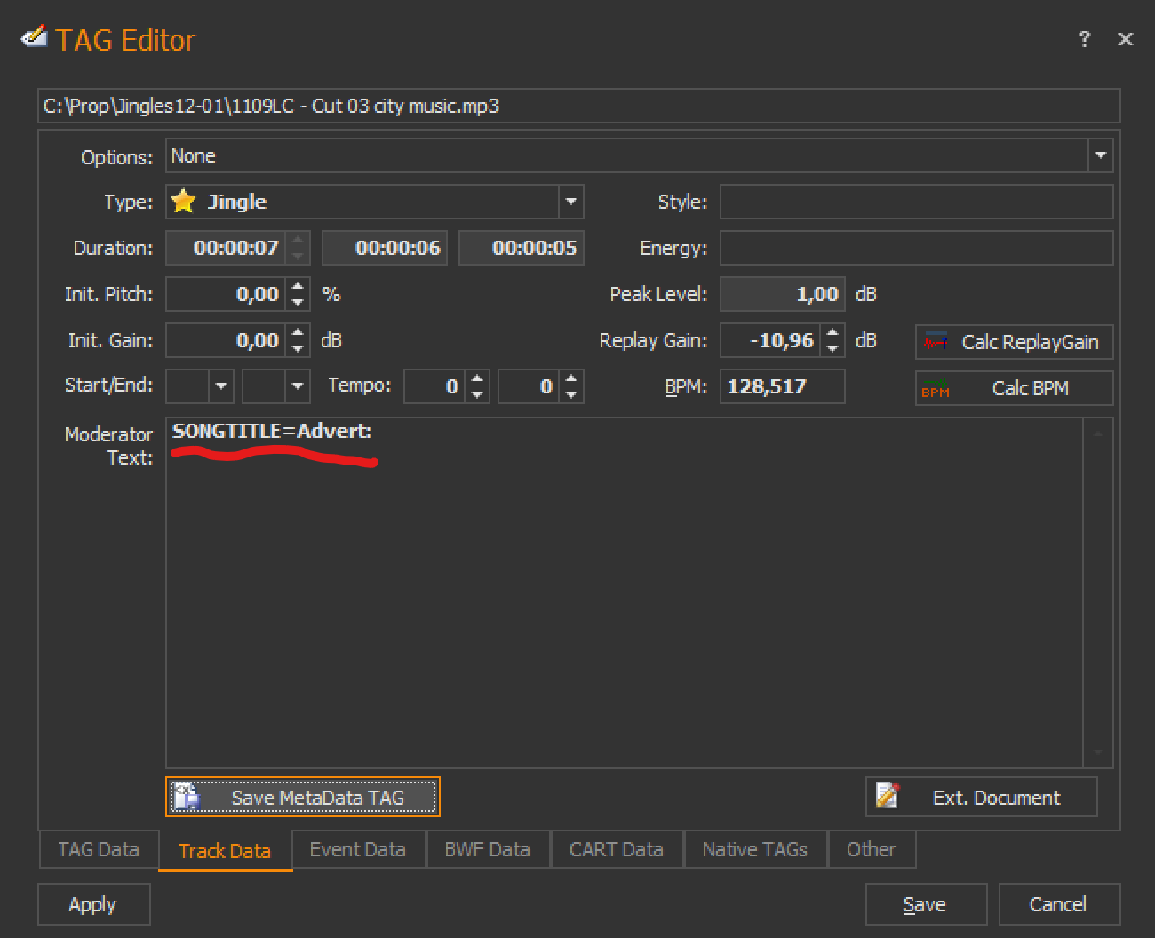 WHAO !!! for now i had ONLY edit the MetaTag artis/title with Advert:/Advert: and work, tomorrow i will check/test all your infos ! Thanks for help and nice program !