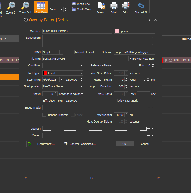 And yes, in my test I only change the attenuation value of the overlay entry. I let the overlay play via the scheduler in the overlay player.