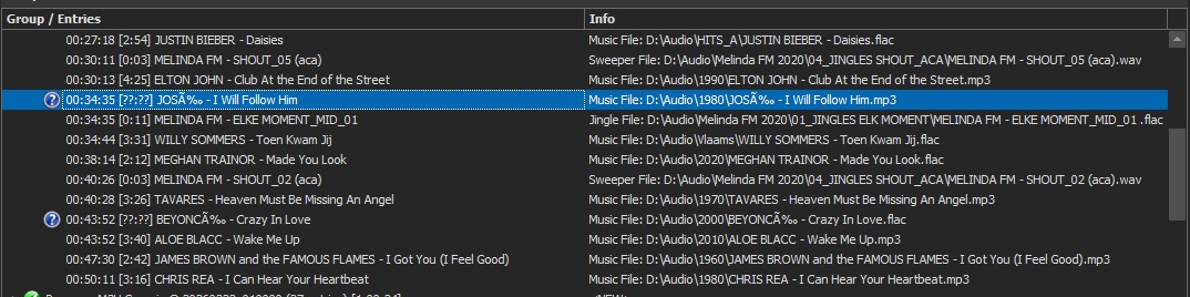 An M3U file — what encoding should it use? UTF-8 without BOM? I’m getting errors with filenames not being read correctly (see attachment and image). For example: JOSÉ - I Will Follow Him.mp3 and BEYONCÉ - Crazy In Love.flac.