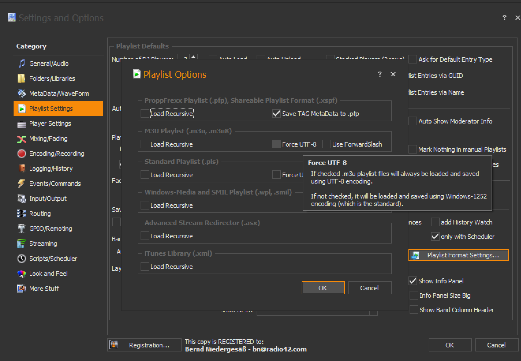 I modified the line in ProppFrexx.importformats (Program Files - radio42 - ProppFrexx ONAIR) so that M3U is treated as a UTF-8 file, but I’m still getting the same errors with certain characters.