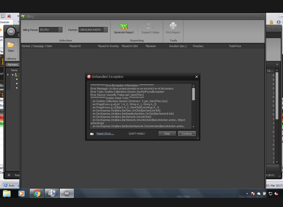 And could it be, that the selected Partner doesn't exist anymore in your Advert Lib?