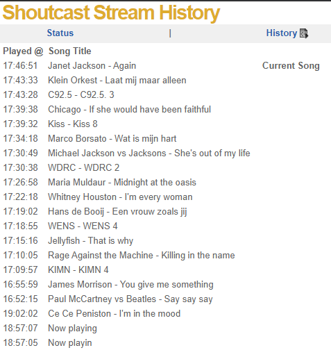 Thanks for your great help! It was indeed working, but only visible in the "history" tab in the Shoutcast server (not directly updated in the main screen after a track change). Now I only have to find out how to exclude the jingles from this list...