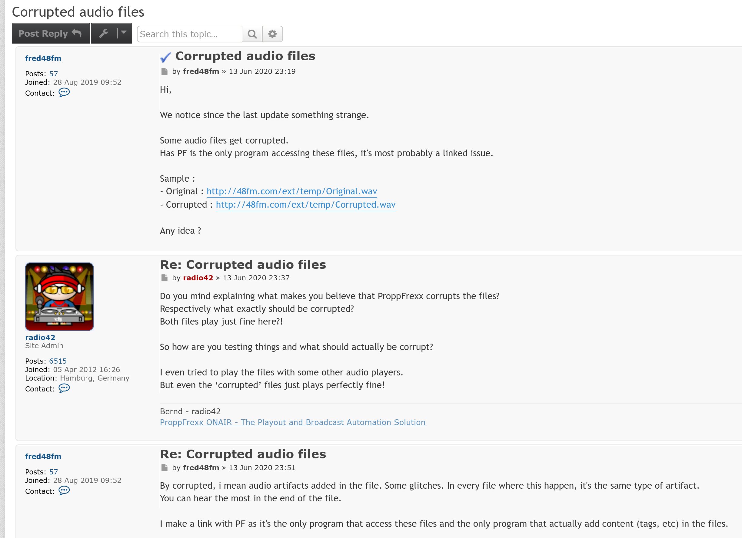 2. I am the very first person who have the corrupted files because ProppFrexx overwrite the audio files.