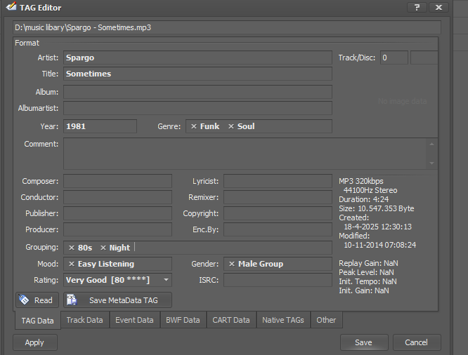 I give it a try, can you make a screen shot how your song there is tagging? i need some words, but witch words are the best for that field. i trying to understand and make it on my way, but i need anny screenshot. do you have that working on radio42?. then share place a demo for me. tanks a lot.