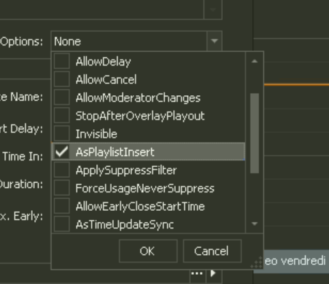 example: in a 3 hour program, if an overlay is set to play a "2mn news flash" at 6 and 8, first would be on time , but 8 would be played at 8+2mn.