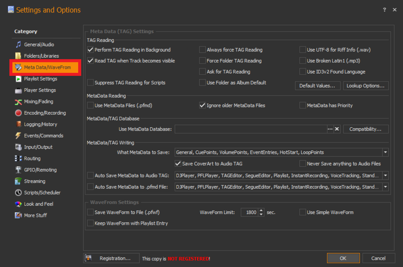 The category title for Meta Data/WaveForm seems to spell 'WaveFrom':
