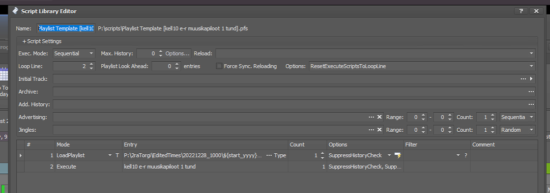 As you correctly stated, in one script the additional path „20221218_1000\“ was added incorrectly to the LoadPlaylist script-line. Just remove it, as the following macros (${start_…) do already add this. So it would be added twice.