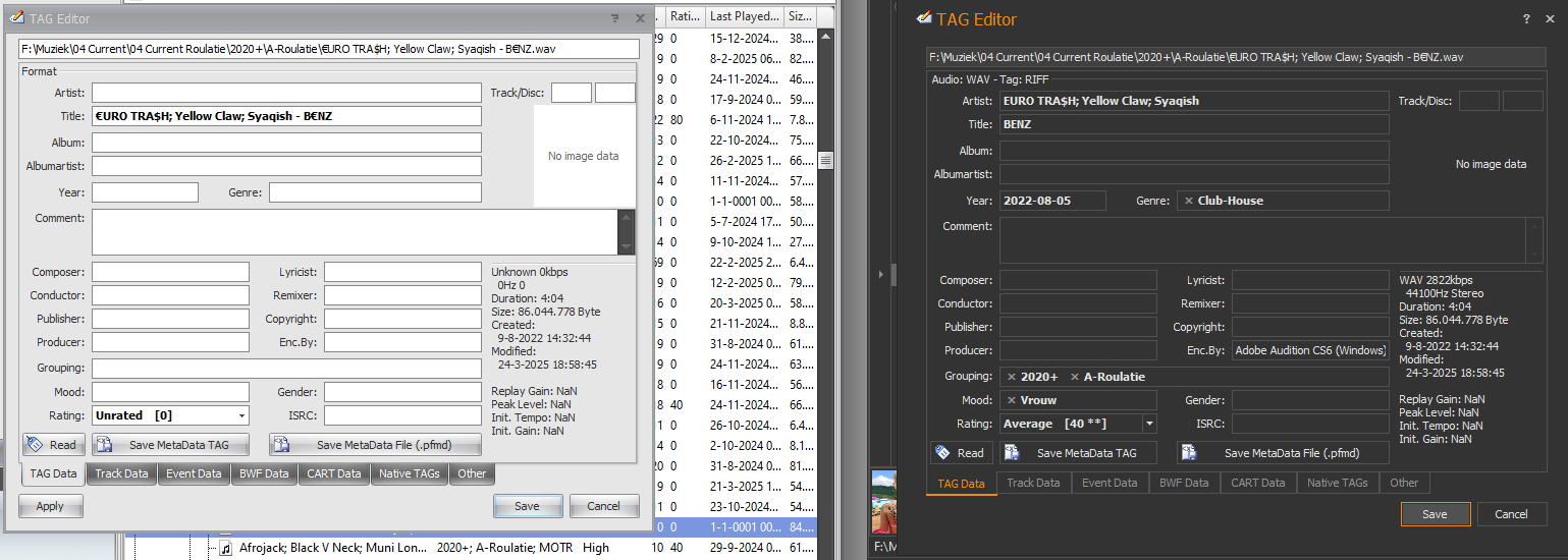On the left ONAIR, on the right Tagger. Both show different info from the same file.