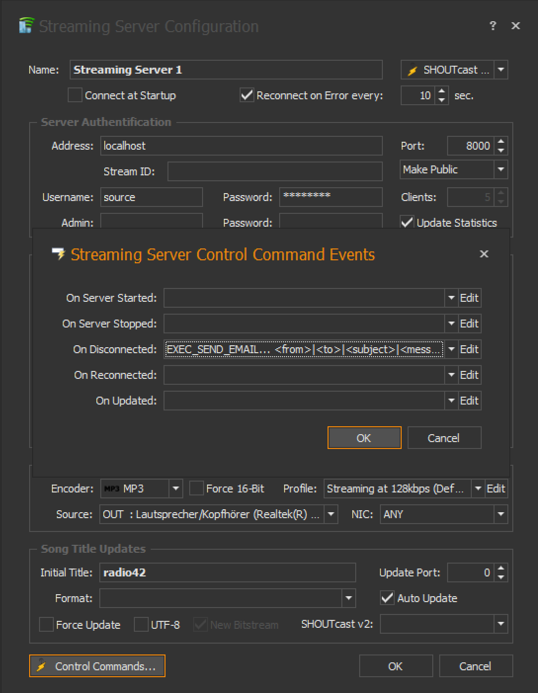 Is it possible to trigger an email alert when there is a disconnection to the streaming server in Network Streaming Monitor? Alternatively, is it possible to find the different disconnections in a log?